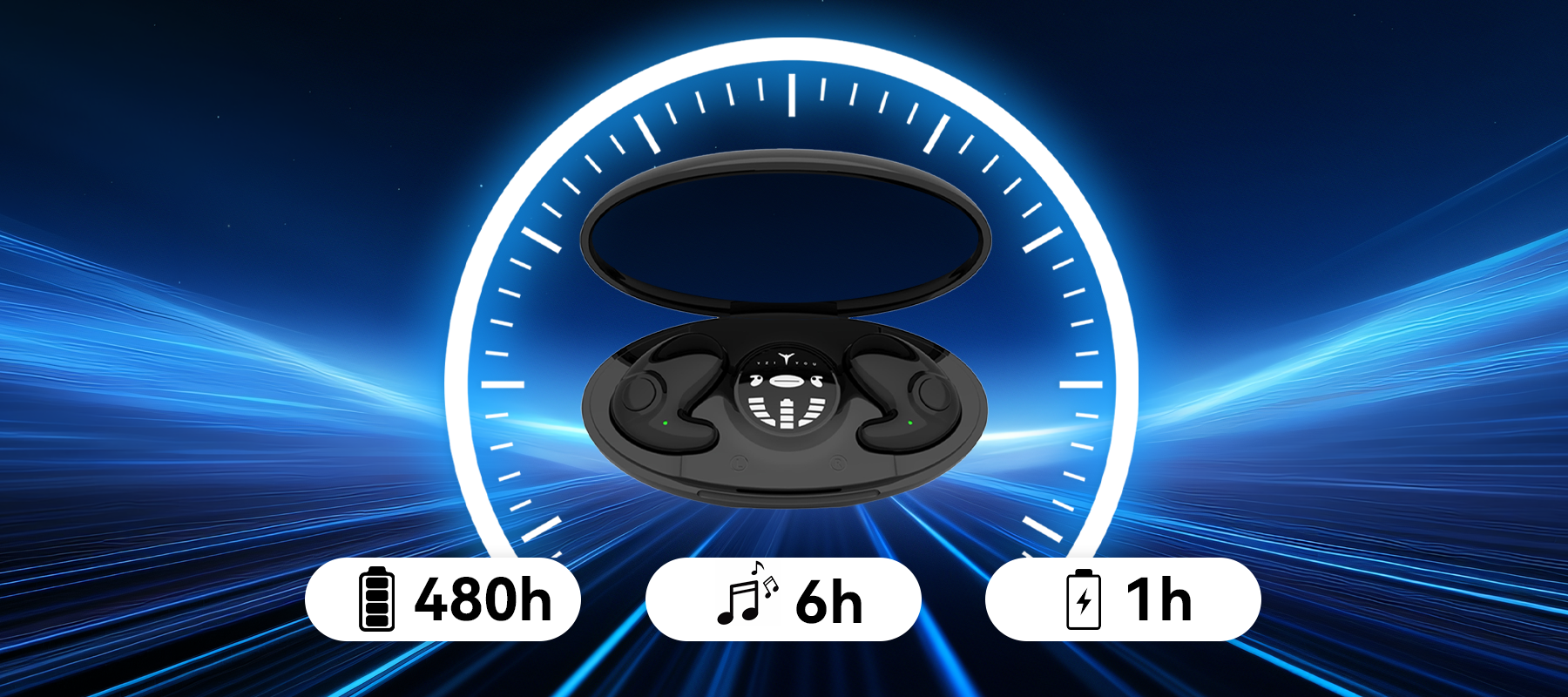 • Long Battery & Charging Case — 24h playtime, 480h standby, fast charging