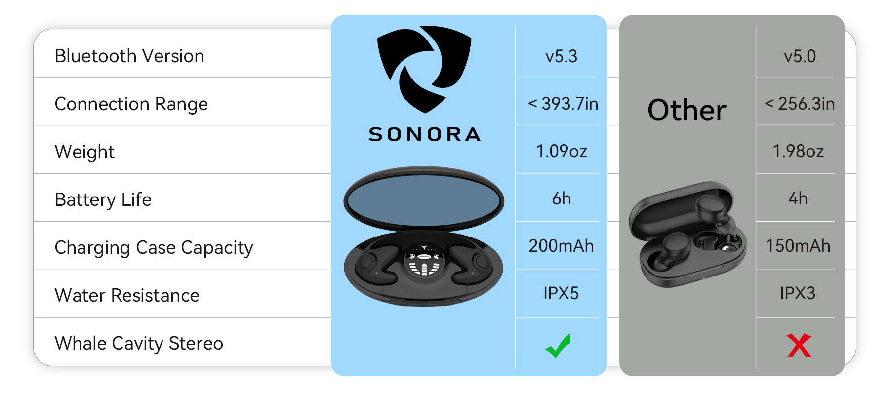 Thanks to the newly upgraded IPX5 waterproof technology, you get professional-grade protection. Whether it's heavy sweat or an unexpected downpour, Sonora shrugs off the moisture and splashes. This guarantees high durability, allowing you to wear them confidently in any environment and continuously enjoy a pure audio experience.